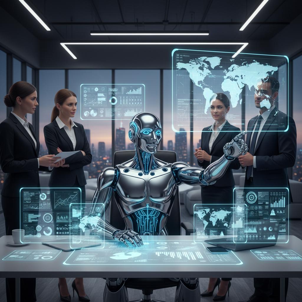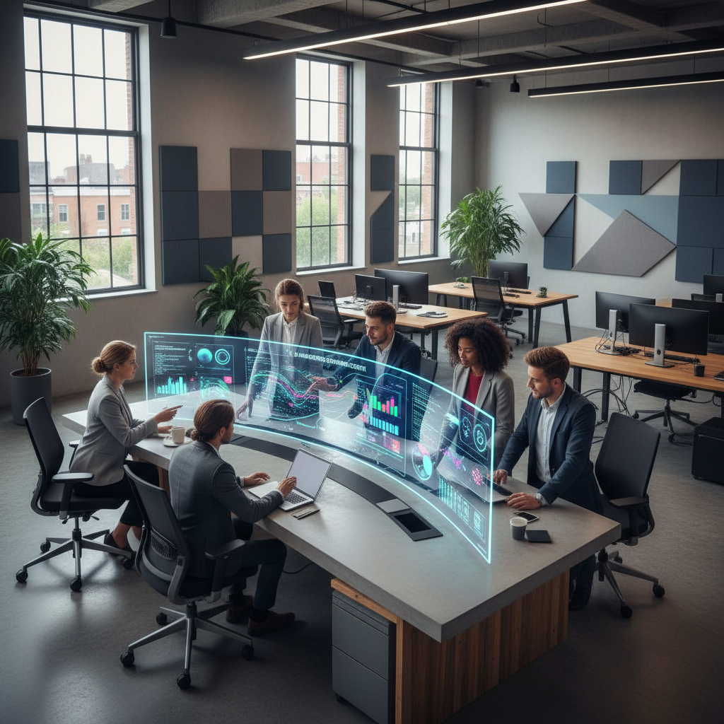 Wizja współpracy ludzi i AI w marketingu – biuro przyszłości.